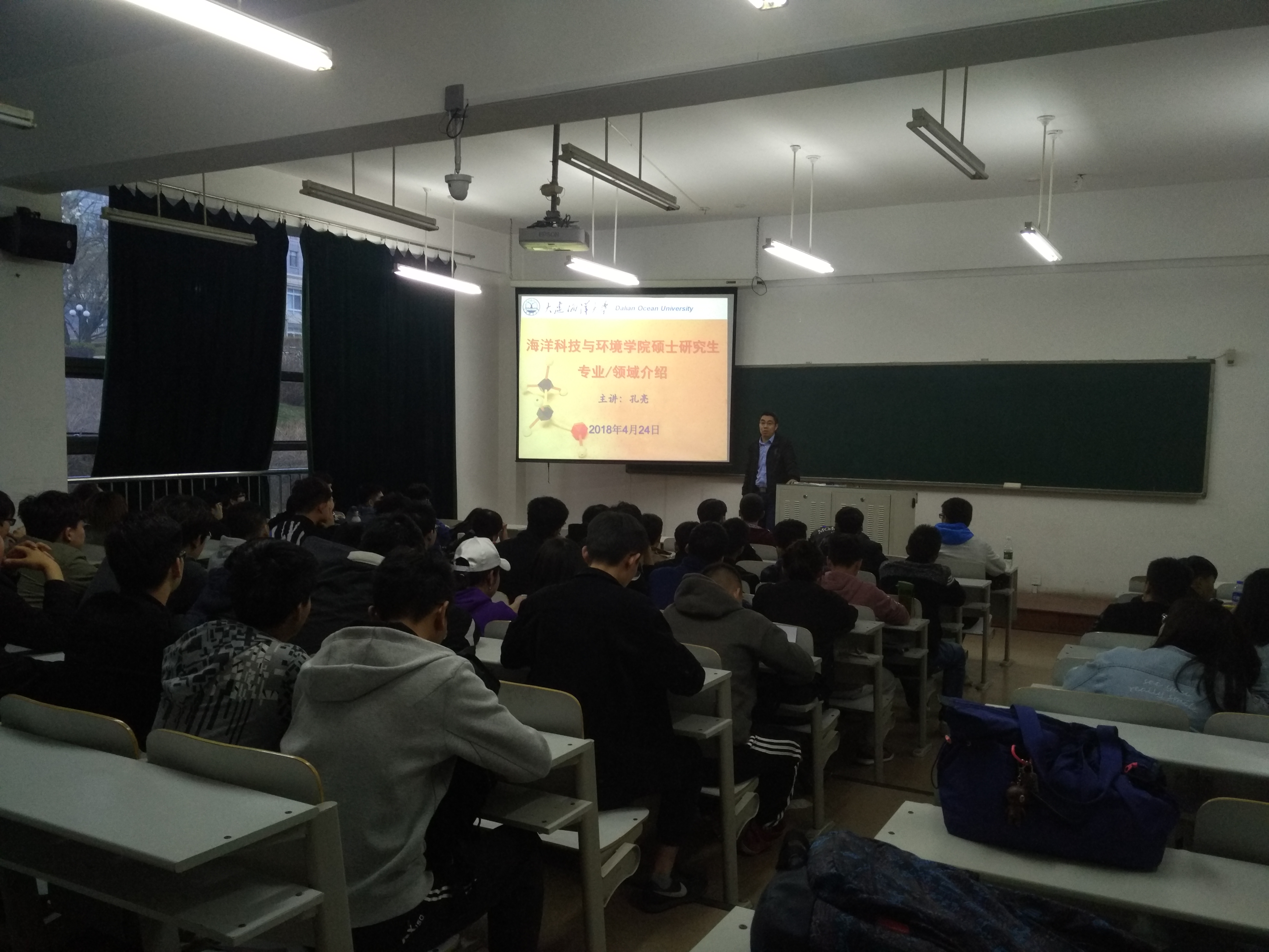 为提高学生的学习兴趣,帮助学生深入了解考研。2018年4月24日,太阳集团tyc234cc针对学院15级有考研意向的学生在獐子岛教学楼110教室举办研究生报考动员大会.海洋科技与环境院院长刘鹰、副院长张明亮出席本次大会。