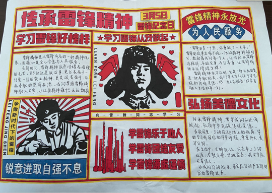 在“学雷锋 树新风”主题手抄报评比活动中,同学们以笔为媒、以画传情,精心构思排版,用彩笔勾勒雷锋肖像,用工整字迹抄录雷锋日记与志愿感悟。一幅幅作品既生动再现雷锋故事,又真实记录身边好人好事,将“奉献、友爱、互助、进步”的志愿精神凝于笔墨之间。