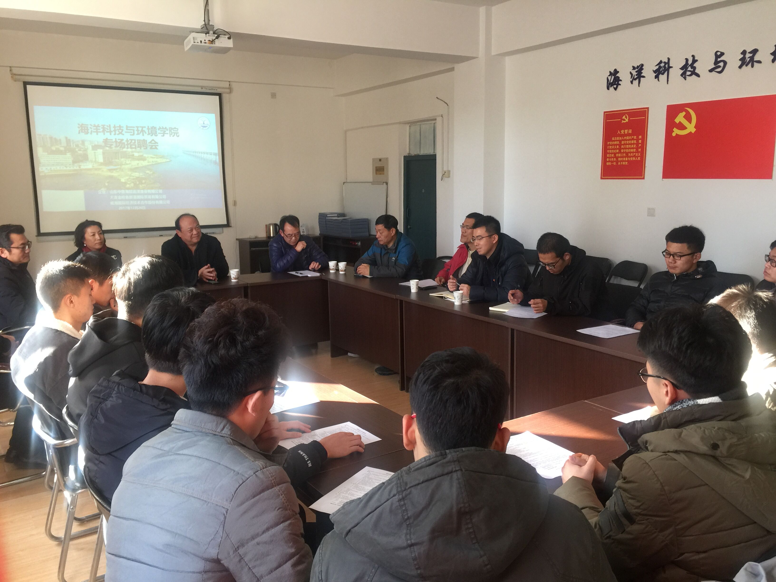 为推进学院2018届毕业生就业工作,2017年12月25日我院在会议室召开专业专场招聘会,招聘企业代表、部分海洋...